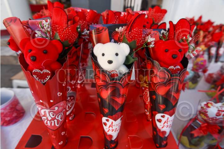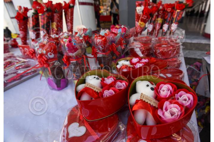 TOLUCA, ESTADO DE MÉXICO, 13FEBRERO2026.- En vísperas del Día del Amor y la Amistad, en el centro de Toluca emprendedores y comerciantes ofrecen una amplia variedad de regalos para el próximo 14 de febrero. Desde las clásicas flores naturales como los tulipanes hasta velas con formas de flores y de listón, postres, playeras, chocolates y peluches, se puede encontrar una gran cantidad de opciones para consentir a ese ser querido y hacer de este día una ocasión especial. FOTO: CRISANTA ESPINOSA AGUILAR/CUARTOSCURO.COM