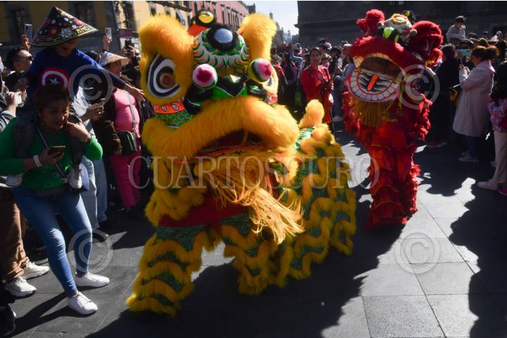 CIUDAD DE MÉXICO, 07FEBRERO2026.- Decenas de familias disfrutaron del tradicional desfile de dragones y leones para recibir el año nuevo chino 2026 (Año del Caballo), evento organizado por el Museo Nacional de las Culturas del Mundo que recorrió la calle de Moneda en el Centro Histórico. FOTO: MARIO JASSO/CUARTOSCURO.COM