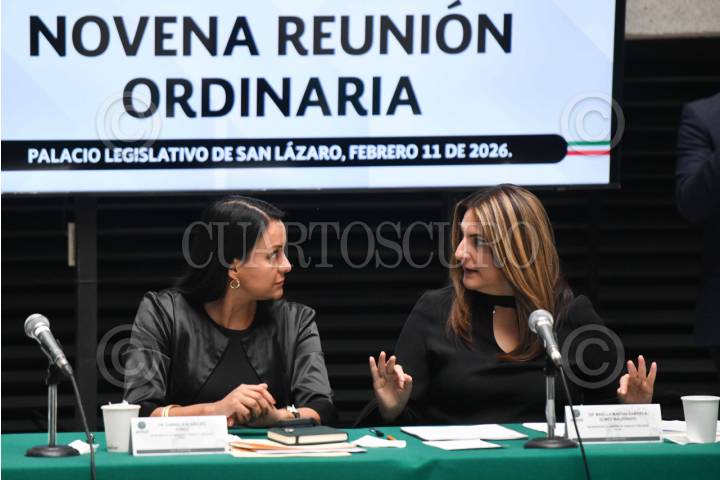 CIUDAD DE MÉXICO, 11FEBRERO2026.- Las legisladoras: Gabriela Benavides y Maiella Gómez Maldonado, durante la novena reunión ordinaria de la Comisión de Trabajo y Previsión Social en la que se aprobó dictámenes en materia de transparencia salarial; igualdad de género y días descanso obligatorio. FOTO: MARIO JASSO/CUARTOSCURO.COM