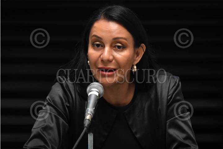 CIUDAD DE MÉXICO, 07ABRIL2026.- Kenia López Rabadán, diputada y presidenta de la mesa directiva, ofreció palabras a los medios de comunicación durante la sesión de la Cámara de Diputados en la que se discutió la reforma a la Ley Federal de Derechos de Autor y a la Ley Federal del Trabajo para proteger los derechos de artistas, compositores, intérpretes y acordes de doblaje. FOTO: MARIO JASSO/CUARTOSCURO.COM