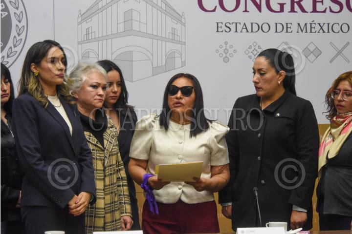 TOLUCA, ESTADO DE MÉXICO, 09JULIO2025.- Las diputadas Ana Yurixi Leyva Piñón, Jennifer Nathalie González, Arleth Stephanie Grimaldo, Zaira Zedillo Silva y le diputade Luisa Esmeralda Navarro integrantes de la Comisión Legislativa para las Declaratorias de Alerta de Violencia de Género contra las Mujeres por Feminicidio y Desaparición en donde se indicó que urge una coordinación estrecha con los municipios mexiquenses con alertas de género para lograr resultados, así como los recursos que son destinados a estos municipios sean utilizados con transparencia y un verdadero impacto social. FOTO: CRISANTA ESPINOSA AGUILAR/CUARTOSCURO.COM