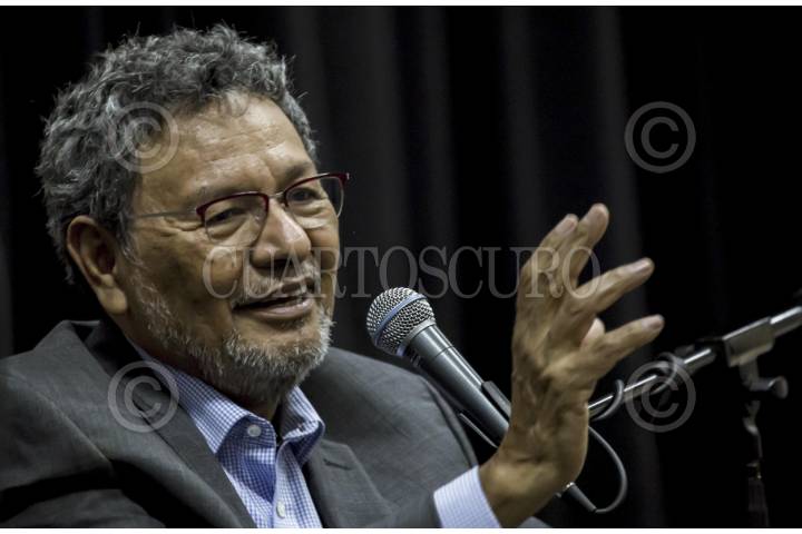 GUANAJUATO, GUANAJUATO, 04MARZO2026.- Élmer Mendoza, escritor mexicano, fue galardonado con el IX Premio Jorge Ibargüengoitia de Literatura, otorgado por la Universidad de Guanajuato (UG) en la categoría de novela negra. En la imagen, Élmer Mendoza, durante la charla "Letras del norte, literatura y corridos" en la Feria Nacional del Libro Zacatecas 2017. FOTO: ARCHIVO/MISAEL VALTIERRA/CUARTOSCURO.COM