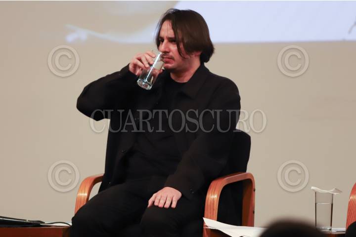 CIUDAD DE MÉXICO, 28SEPTIEMBRE2025.- El actor colombiano Germán Jaramillo, durante el homenaje a la destacada trayectoria de Hugo Hiriart, escritor y dramaturgo mexicano, evento realizado en la Sala Miguel Covarrubias del Centro Cultural Universitario de la Universidad Nacional Autónoma de México (UNAM). FOTO: MARIO JASSO/CUARTOSCURO.COM
