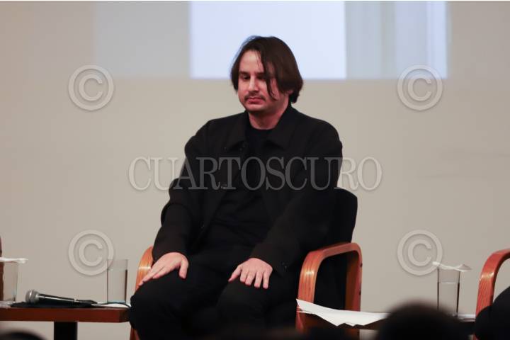 CIUDAD DE MÉXICO, 28SEPTIEMBRE2025.- Guillermo Sheridan, escritor mexicano, durante el homenaje a la destacada trayectoria de Hugo Hiriart, escritor y dramaturgo mexicano, evento realizado en la Sala Miguel Covarrubias del Centro Cultural Universitario de la Universidad Nacional Autónoma de México (UNAM). FOTO: MARIO JASSO/CUARTOSCURO.COM