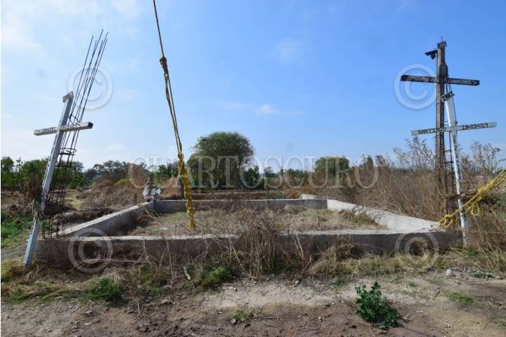 TLAHUELILPAN, HIDALGO, 18ENERO2026.- A siete años del incendio en un ducto de Pemex que dejó 137 muertos, no se ha concretado el proyecto para construir un memorial a los fallecidos a pesar de las promesas de las autoridades de los tres niveles de gobierno para liberar el predio a los familiares a fin de que edifiquen su capilla. En la zona cero del siniestro sólo permanecen entre hierba los cimientos de lo que pretendió ser la capilla. FOTO: FRANCISCO VILLEDA/CUARTOSCURO.COM