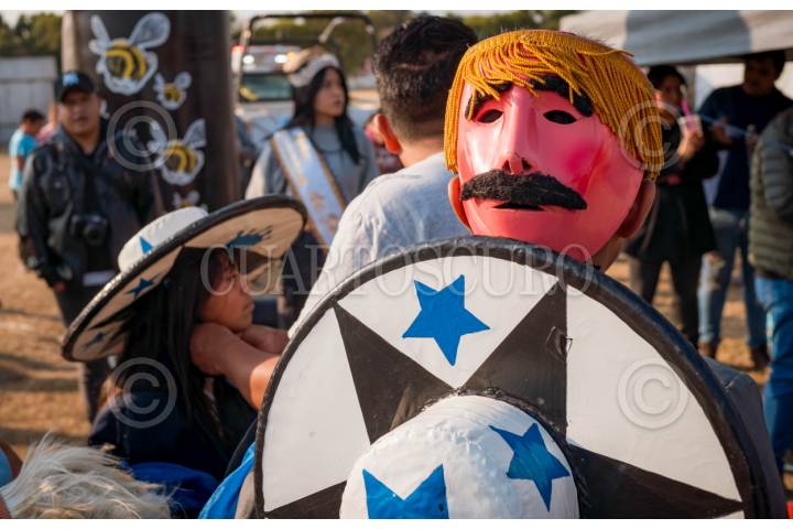 SAN NICOLÁS DE LOS RANCHOS, PUEBLA, 10MARZO2026.- Personajes de carnaval conocidos como Los “XINACATES” se observan durante la realización del remate de carnaval en esta comunidad poblana. En esta comunidad, los disfrazados acostumbran colorearse el cuerpo con pinturas vegetales de color negro, plateado y rojo, tal y como se acostumbra en esta zona de poblaciones asentadas en las faldas del volcán Popocatépetl. Estos personajes que de acuerdo con especialistas provienen de una tradición anterior a la llegada de los españoles, conviven durante los días del carnaval con los llamados huehues. FOTO: J. GUADALUPE PÉREZ/CUARTOSCURO.COM
