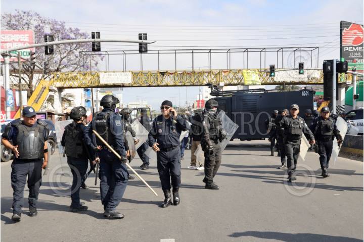 OAXACA DE JUÁREZ, OAXACA, 17MARZO2026.- Este martes elementos de la Policía Estatal desalojaron cinco cruceros que mantenían bloqueados integrantes del Comité de Defensa de los Derechos de los Pueblos en la capital de Oaxaca (CODEP). Los elementos retiraron unidades de transporte que los manifestantes habían usado para impedir el tránsito vehicular, además de lanzar gas lacrimógeno para replegarlos. La organización pedía al gobierno del morenista Salomón Jara, la atención a un pliego de demandas de obra pública y social para comunidades marginadas en el estado. Además el operativo policial se trasladó a la agencia de Pueblo Nuevo en donde un grupo de vecinos mantenía un bloqueo para pedir la conclusión de una obra de drenaje pluvial. FOTO: CAROLINA JIMÉNEZ MARISCAL/CUARTOSCURO.COM