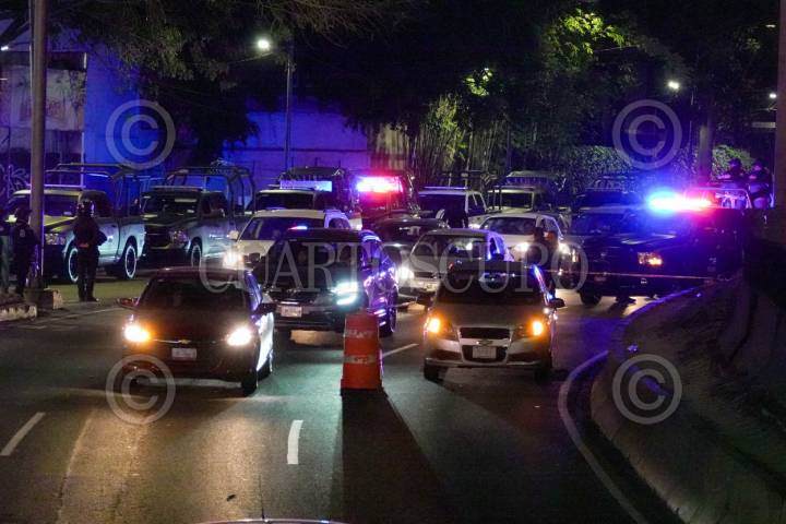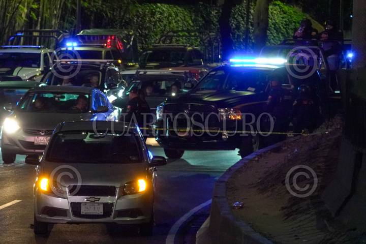 CIUDAD DE MÉXICO, 28DICIEMBRE2025.- Policías capitalinos, mantuvieron la custodia de un automóvil, supuestamente utilizado para un asalto en Fuentes del Pedregal, donde un policía perdió la vida. Dicho carro fue abandonado en los carriles centrales de Periférico casi al cruce con Avenida de las Palmas. FOTO: ROGELIO MORALES /CUARTOSCURO.COM