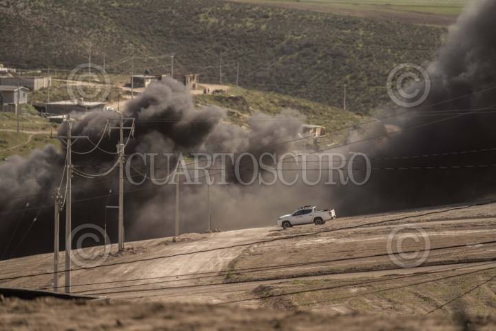 ROSARITO, BAJA CALIFORNIA 4FEBRERO2026.- Una explosión en un ducto de Pemex provocó un incendio en la zona de Villas de Costa Rica, en Playas de Rosarito, lo que obligó a evacuar de manera preventiva alrededor de 50 viviendas; el siniestro, originado por una fuga de gas, fue atendido por bomberos, Protección Civil y personal de Pemex sin que se reportaran lesionados ni daños a casas, y horas después autoridades informaron que el área fue declarada segura y los residentes pudieron regresar a sus viviendas. FOTOS OMAR MARTÍNEZ /CUARTOSCURO.COM