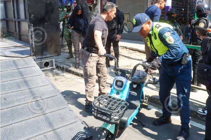 CIUDAD DE MÉXICO, 10FEBRERO2026.- En una acción conjunta, agentes de la Secretaría de Seguridad Ciudadana, la Marina y la Fiscalía realizaron cateos en dos locales para incautar bicicletas eléctricas, ya que señalaron que evaden los impuestos correspondientes al tratarse de importaciones de origen asiático. Los hechos ocurrieron en Eje Central, a la altura de la calle de Vizcaínas, alcaldía Cuauhtémoc. FOTO: ROGELIO MORALES/CUARTOSCURO.COM