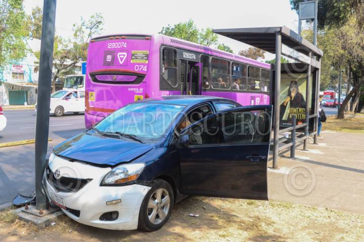 CIUDAD DE MÉXICO, 17DICIEMBRE2025.- Un hombre murió infartado cuando circulaba en su coche. La víctima de aproximadamente 60 años quedo dentro de su unidad, la cual se impactó en un poste sobre Eje 2 y calle de Jesús Carranza, en la colonia Morelos. FOTO: ROGELIO MORALES/CUARTOSCURO.COM