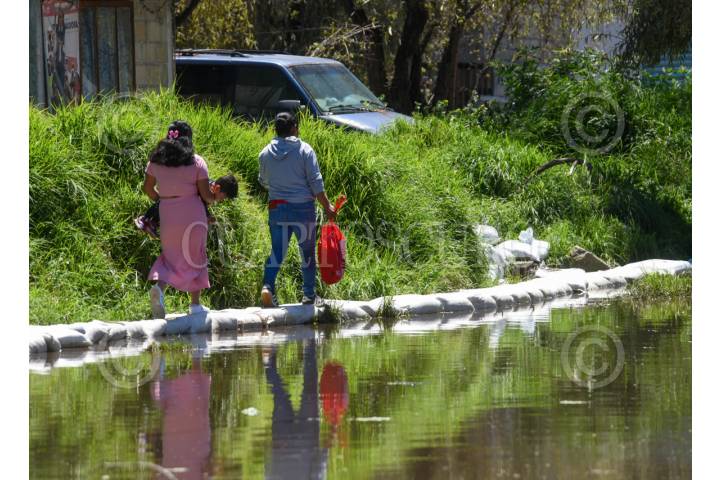 OCOYOACAC, ESTADO DE MÉXICO, 09SEPTIEMBRE2025.- Vecinos de San Pedro Cholula en Ocoyoacac instalaron costaleras para poder salir de sus hogares ya que llevan casi 20 días inundados, al menos 4 calles son las más afectadas, ya que el agua de lluvia ha desbordado canales que se han visto rebasados, y comienza a brotar el agua por las coladeras de las calles, piden a las autoridades estatales y municipales apoyo sobre todo para poner en marcha 3 bombas y poder sacar el agua de casas y la calle. Autoridades auxiliares estiman son más de 200 casas afectadas, algunas familias ya abandonaron sus hogares por la situación en la que se encuentran. FOTO: CRISANTA ESPINOSA AGUILAR/CUARTOSCURO.COM