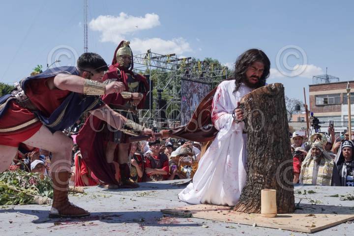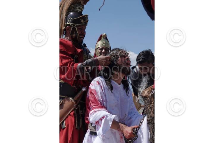 CIUDAD DE MÉXICO, 03ABRIL2026.- Jesús es azotado como parte de la representación 183 de la Semana Santa en Iztapalapa, durante la escenificación del Viacrucis; celebración que a partir de este 2026 es considerada Patrimonio Cultural Inmaterial de la Humanidad. FOTO: CAMILA AYALA BENABIB / CUARTOSCURO.COM