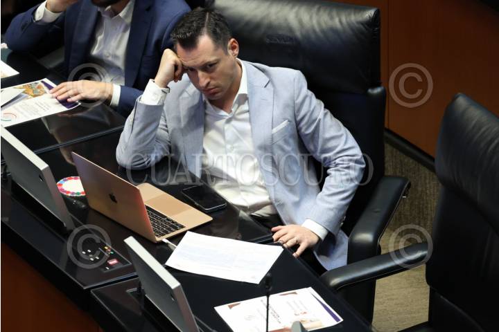 CIUDAD DE MÉXICO, 09DICIEMBRE2025.- El senador emecista Luis Donaldo Colosio Riojas durante la penúltima sesión del 2025 del Senado de la República, en la que se aprobó el 10 de abril cómo el Día Nacional del Huapango. FOTO: GALO CAÑAS/CUARTOSCURO.COM