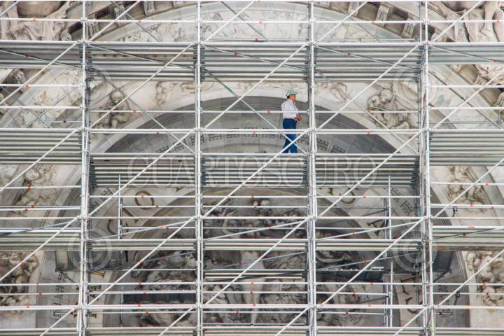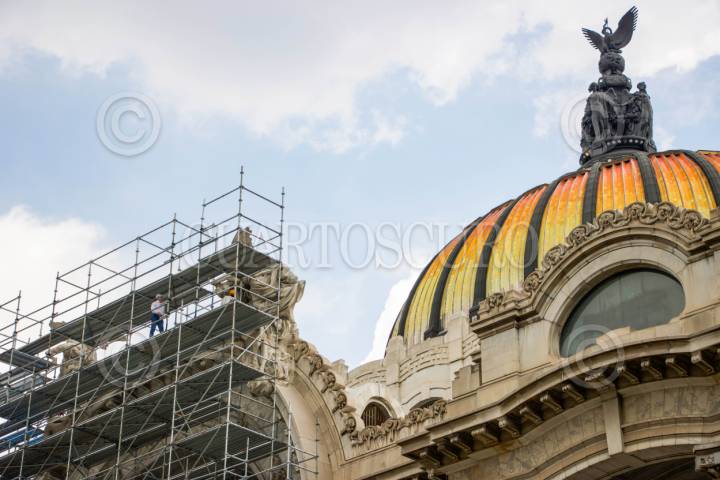CIUDAD DE MÉXICO, 31MARZO2026.-Trabajadores realizan labores de limpieza y conservación en la fachada sur del Palacio de Bellas Artes, como parte de los trabajos encabezados por la Secretaria de Cultura del Gobierno de México y el instituto Nacional de Bellas Artes y Literatura (INBAL), a través del Centro Nacional de Conservación y Registro del Patrimonio Artístico Mueble (CENCROPAM), estos labores tendrán una duración estimada de 10 semanas y forman parte de los labores permanentes de conservación del patrimonio artístico nacional bajo resguardo del INBAL. FOTO: TOMÁS PÉREZ DE LA CRUZ/ CUARTOSCURO.COM