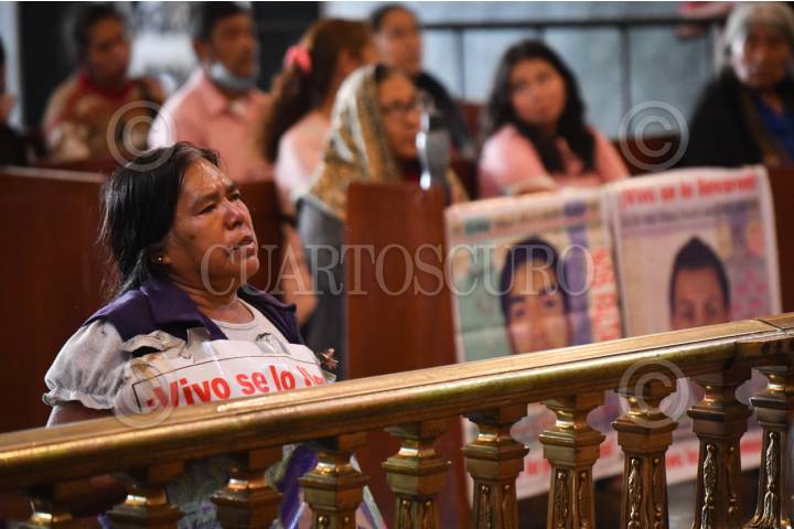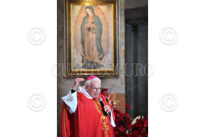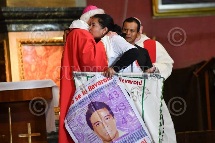 CIUDAD DE MÉXICO, 26DICIEMBRE2025.- El Obispo Raúl Vera, ofició la misa en el Templo Expiatorio Cristo Rey, en donde estuvieron madres y padres de los 43 normalistas desaparecidos de Ayotzinapa, quienes realizaron una marcha que partió de la glorieta de Peralvillo rumbo a la Basílica de Guadalupe como parte de la actividades de la "135 Acción global por Ayotzinapa" en conmemoración del décimo aniversario de los hechos en Iguala. FOTO: MARIO JASSO/CUARTOSCURO.COM