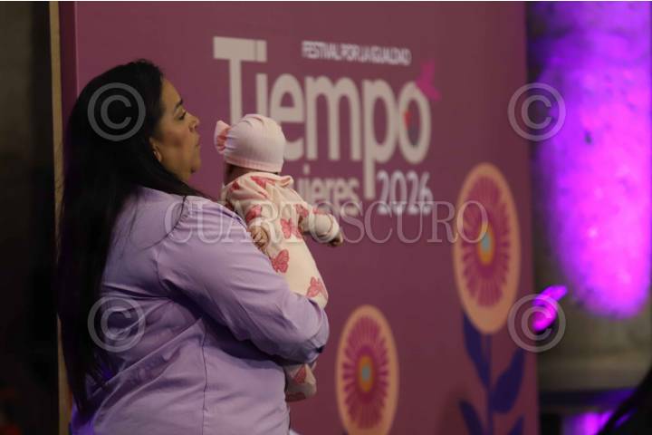 CIUDAD DE MÉXICO, 17MARZO2026.- Una madre junto con su bebé durante el encuentro "Sinfonía de Mujeres" en donde expresaron las necesidades de las mujeres en la Cultura y el Arte. El acto se realizó en el Museo de la Ciudad de México. FOTO: GRACIELA LÓPEZ/CUARTOSCURO.COM