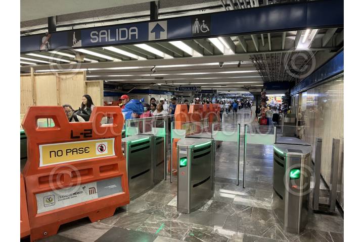 CIUDAD DE MÉXICO, 26ENERO2026.- Comenzaron a cerrar gran parte de los torniquetes de la estación Bellas Artes de la Línea 2 para realizar obras de los torniquetes de salida de nueva generación, que ya no tienen tubos giratorios, sino puertas que se abren automáticamente a unos 30 centímetros antes de pasar. FOTO: GRACIELA LÓPEZ /CUARTOSCURO.COM