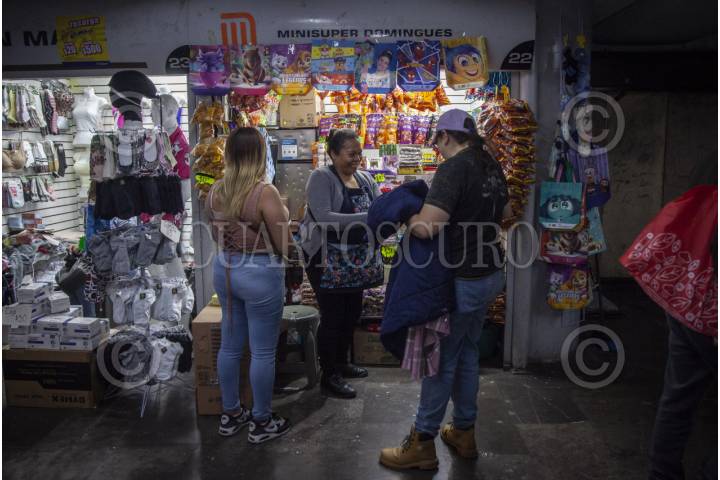 CIUDAD DE MÉXICO, 26ENERO2026.- Silvana, de 31 años, y Teresa Tovar son madre e hija; ambas atienden un local propio, obtenido tras años de organización dentro de la colectiva Leonas Vagoneras. Las “vagoneras”, o vendedoras informales, enfrentan problemáticas como detenciones de hasta 36 horas, multas de 500 pesos y la separación de sus hijas e hijos al ser detenidas por vender dentro del Sistema de Transporte Colectivo Metro. Ante la cercanía del Mundial, señalan una “limpia” de vendedores sin procesos de protesta, reubicación o alternativas de trabajo. Patricia, de 56 años, fundó Leonas Vagoneras, colectiva creada en 2021 siguiendo el ejemplo de las protestas feministas —el nombre fue elegido por votación, al considerarse mujeres que se acompañan en manada—. La colectiva, integrada únicamente por mujeres, llegó a reunir hasta 130 vendedoras informales del Metro y ha logrado establecer alianzas con organizaciones como la asociación Fondo de Semillas, lo que les ha permitido contar con abogadas, apoyo psicológico, orientación ante detenciones y separación de sus hijos, talleres gratuitos para la independencia económica y el acceso a 10 locales para la colectiva como alternativa a la informalidad. FOTO: ANDREA MURCIA /CUARTOSCURO.COM