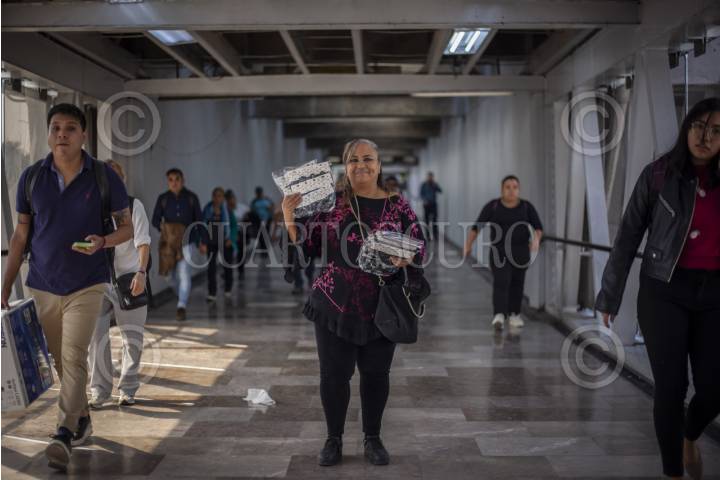 CIUDAD DE MÉXICO, 26ENERO2026.- Patricia, de 56 años, fundó Leonas Vagoneras, colectiva creada en 2021 siguiendo el ejemplo de las protestas feministas —el nombre fue elegido por votación, al considerarse mujeres que se acompañan en manada—. A partir de su trabajo en los vagones del Metro logró ofrecer mejores condiciones de vida a sus hijos, quienes actualmente se sienten orgullosos de ella, y participa como vocera de la colectiva para visibilizar las condiciones de sus compañeras, combatir la estigmatización y promover entornos dignos de trabajo. Las “vagoneras”, o vendedoras informales, enfrentan problemáticas como detenciones de hasta 36 horas, multas de 500 pesos y la separación de sus hijas e hijos al ser detenidas por vender dentro del Sistema de Transporte Colectivo Metro; ante la cercanía del Mundial, señalan una “limpia” de vendedores sin procesos de protesta, reubicación o alternativas de trabajo. La colectiva, integrada únicamente por mujeres, llegó a reunir hasta 130 vendedoras informales del Metro y ha logrado establecer alianzas con organizaciones como la asociación Fondo de Semillas, lo que les ha permitido contar con abogadas, apoyo psicológico, orientación ante detenciones y separación de sus hijos, talleres gratuitos para la independencia económica y el acceso a 10 locales para la colectiva como alternativa a la informalidad. FOTO: ANDREA MURCIA /CUARTOSCURO.COM