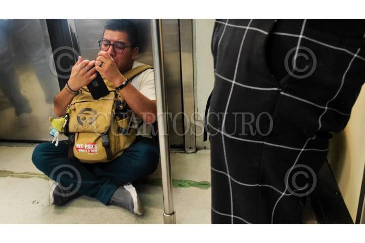 CIUDAD DE MÉXICO. 30ENERO2026.- Joven de la generación Z sin asiento en el Metro, de la línea 9, en la estación Jamaica. FOTO: VICTORIA VALTIERRA/CUARTOSCURO.COM