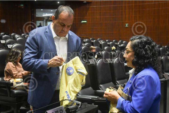 CIUDAD DE MÉXICO, 21ABRIL2026.- Cuauhtémoc Blanco, diputado de Morena, firma unas playeras del Club América, previo al inicio de la sesión de la Cámara de Diputados en la que se discute el dictamen de la Comisión de Puntos Constitucionales por el que se reforma el artículo 73 en materia de feminicidio. FOTO: MARIO JASSO/CUARTOSCURO.COM