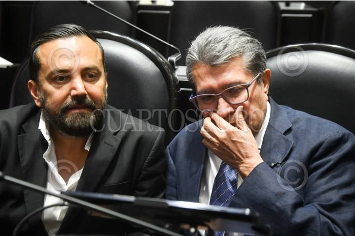 CIUDAD DE MÉXICO, 21ABRIL2026.- Con 334 votos a favor y 127 en contra fue aprobado en la sesión ordinaria de la Cámara de Diputados el acuerdo por el que se declara electos como consejeros electorales del Consejo General del Instituto Nacional Electoral para el periodo del 22 de abril del 2026 al 21 de abril de 2035 a las ciudadanas Blanca Yassahara Cruz García, Frida Denisse Gómez Puga y el ciudadano Arturo Manuel Chávez López. En la imagen, Ricardo Monreal, diputado y coordinador de Morena, junto a sus compañeras de bancada. FOTO: MARIO JASSO/CUARTOSCURO.CO