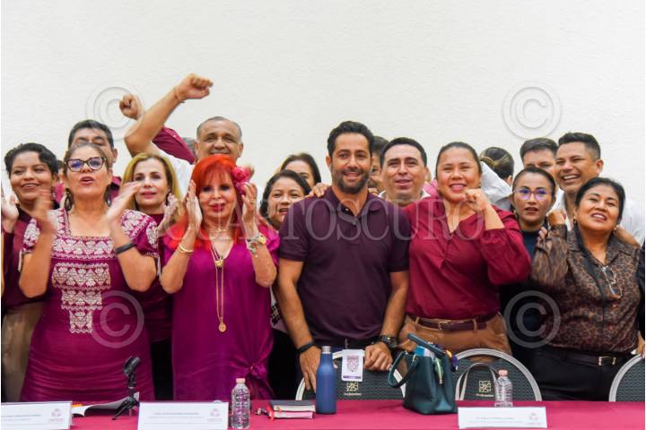 CAMPECHE, CAMPECHE, 22ABRIL2026.- La gobernadora de Campeche, Layda Sansores San Román presentó al alcalde de Ciudad del Carmen, Pablo Gutiérrez Lazarus, como Coordinador de la Cuarta Transformación en Campeche, en un acuerdo de unidad que busca fortalecer la cohesión política rumbo a los próximos procesos electorales. FOTO: MICHAEL BALAM/CUARTOSCURO.COM