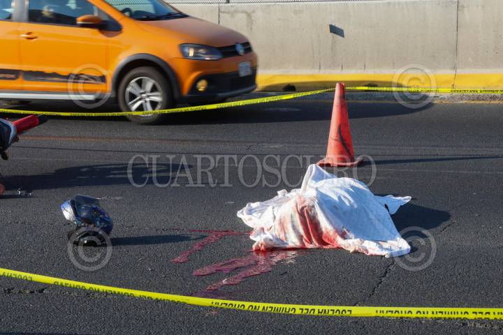 VALLE DE CHALCO, ESTADO DE MÉXICO, 07MARZO2026.- Una pareja que viajaba en su motocicleta derrapó, en la autopista México-Puebla, kilómetro 26 en la colonia Avandaro, en el Municipio de Valle de Chalco. El hombre murió en el lugar, y su acompañante fue traslada mal herida a un hospital. FOTO: ROGELIO MORALES/CUARTOSCURO.COM