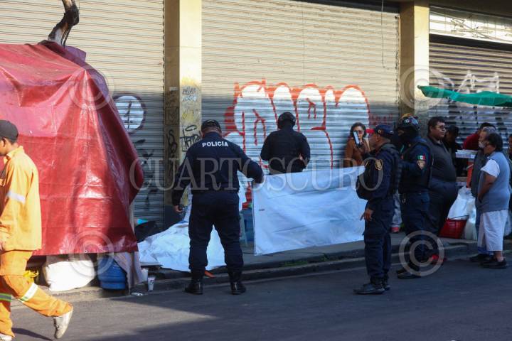 CIUDAD DE MÉXICO, 11MARZO2026.- Un hombre murió de un supuesto infarto, en la calle de Bolívar y avenida Izazaga, vecinos señalaron que la víctima se desempeñaba ayudando a los comerciantes a poner sus puestos en la vía pública. FOTO: ROGELIO MORALES/CUARTOSCURO.COM