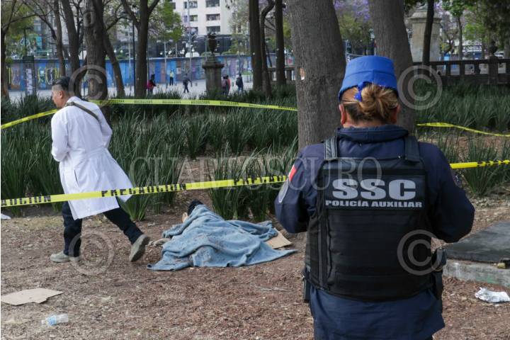 CIUDAD DE MÉXICO, 12MARZO2026.- Murió un hombre en situación de calle en la Alameda Central frente a Bellas Artes, alcaldía Cuauhtémoc. FOTO: ROGELIO MORALES/CUARTOSCURO.COM