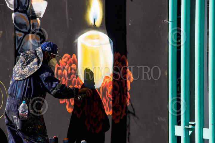 CIUDAD DE MÉXICO 29OCTUBRE2025.- Artistas llenan de color y tradición las calles de Iztapalapa, con murales y pinturas que celebran la vida y la memoria en el Día de Muertos. FOTO: TOMÁS PÉREZ DE LA CRUZ/CUARTOSCURO.COM