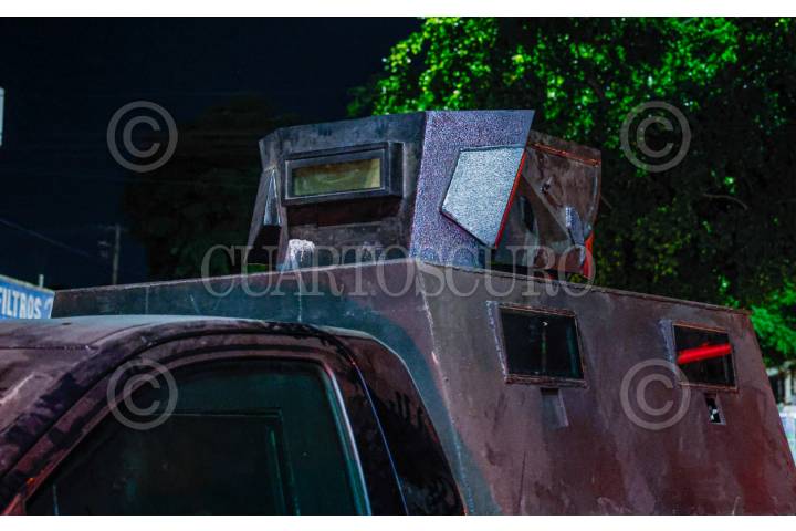 CULIACÁN, SINALOA, 12DICIEMBRE2025.- Desde una camioneta tipo monstruo hasta un dompe con blindaje artesanal, autoridades estatales aseguraron varios vehículos modificados para actividades ilícitas en talleres clandestinos ubicados en la colonia Miguel Hidalgo. Tres domicilios asegurados en el operativo por la FGR, realizado como parte de una estrategia de combate al crimen organizado, reveló el uso de tecnología y materiales de alto calibre en la fabricación de estas unidades, diseñadas para resistir enfrentamientos armados. FOTO: JOSÉ BETANZOS ZÁRATE/CUARTOSCURO.COM