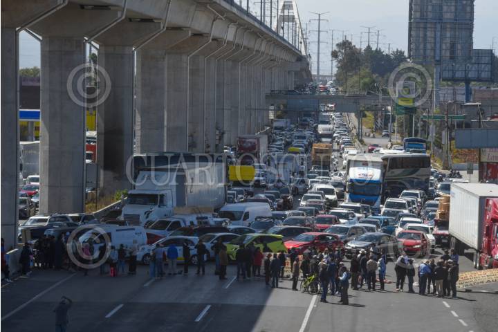 OCOYOACAC, ESTADO DE MÉXICO, 22FEBRERO2026.- Vecinos de la cabecera municipal de Ocoyoacac bloquearon la carretera Toluca-México ante el desabasto de agua que padecen en este momento, ante la negativa de vecinos de San Pedro Cholula, que impiden se culminen los trabajos de manteniendo del sistema de agua, dejándolos sin agua, exigen a las autoridades municipales y estatales su intervención para poder tener el abasto de agua. FOTO: CRISANTA ESPINOSA AGUILAR/CUARTOSCURO.COM