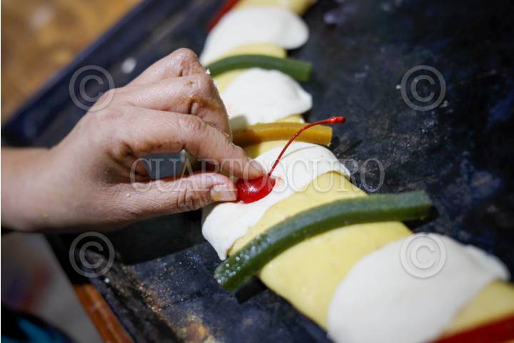 TOLUCA, ESTADO DE MÉXICO, 04ENERO2024.- La Panificadora Azul con 48 años de tradición en la colonia Morelos en Toluca ya se encuentran elaborando la tradicional Rosca de Reyes, sacan algunas en los últimos días de diciembre para que sus clientes empiecen a probarlas, pero empezando enero aumenta el número de roscas que elaboran de manera diaria llegando a preparar hasta 600 por día, para el festejo este 6 de enero; la tradicional rosca panaderos la elaboran desde temprana hora, huevo, mantequilla, naranja, harina, higo, acitrón, son la base para preparar rosca tradicional. FOTO: CRISANTA ESPINOSA AGUILAR /CUARTOSCURO.COM