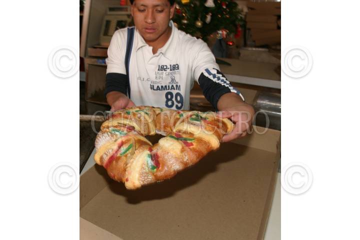 MÉXICO, D.F., 04ENERO2008.- La venta de rosca de reyes se incrementa en las las panificadoras conforme se acerca el festejo de Día de Reyes, según la tradición si la rebanada que te corresponde sale un muñequito te toca hacer los tamales para el Día de la Calendaria. FOTO: MOISÉS PABLO/CUARTOSCURO.COM