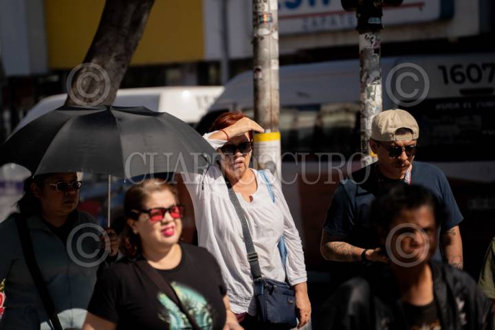 TIJUANA BAJA CALIFORNIA 28FEBRERO2026.-El mes de febrero concluyó con temperaturas inusualmente elevadas en la ciudad de Tijuana, donde el calor registrado en los últimos días ha superado los 30 grados centígrados, alcanzando hasta 31 °C hacia el cierre del mes. Las altas temperaturas, poco comunes para la temporada invernal, han llevado a que en calles y espacios públicos se observe a personas caminando bajo paraguas para protegerse del sol o consumiendo bebidas refrescantes para mitigar el calor. De acuerdo con el pronóstico meteorológico, para los próximos días se espera un ligero descenso en la temperatura, aunque el ambiente continuará siendo cálido. FOTOS CHRIS NOYOLA / CUARTOSCURO.COM