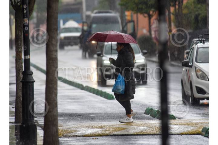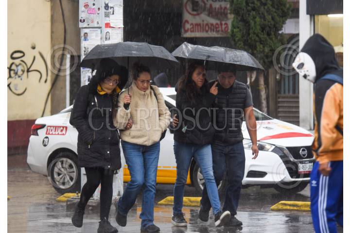 TOLUCA, ESTADO DE MÉXICO, 30MARZO2026.- La mañana de este lunes, la población del Valle de Toluca salió a la calle con paraguas y abrigos debido a la lluvia; según informó el Servicio Meteorológico Nacional se pronostican fuertes lluvias en varios estados, junto con una baja en la temperatura. Se exhorta a la población a estar atenta a los avisos del SMN y Protección Civil. FOTO: CRISANTA ESPINOSA AGUILAR/CUARTOSCURO.COM