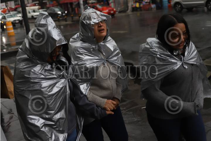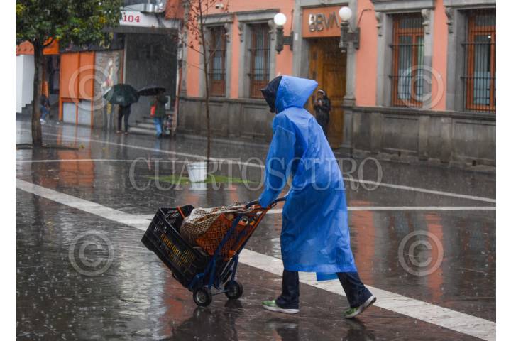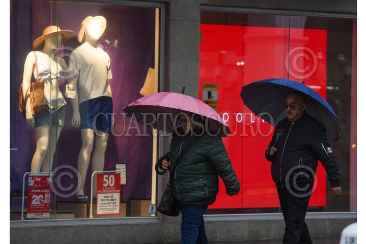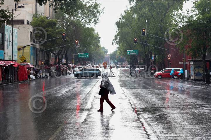 CIUDAD DE MÉXICO, 31MARZO2026.- Al medio día de este martes se presentó una lluvia que sorprendió a los capitalinos que caminaban por las calles del Centro Histórico, quienes buscaron distintas maneras de protegerse. FOTO: DANIEL AUGUSTO/ CUARTOSCURO.COM