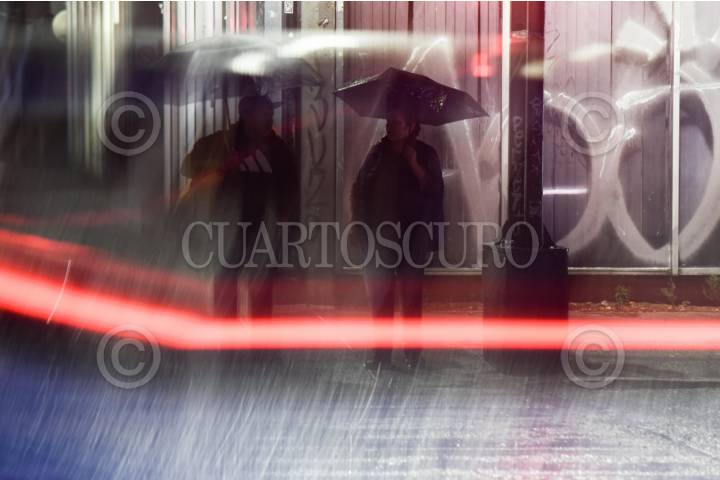 CIUDAD DE MÉXICO, 04ABRIL2025.- Un grupo de personas se protegen con su paraguas de las lluvias registradas esta noche en la capital del país. FOTO: MARIO JASSO/CUARTOSCURO.COM