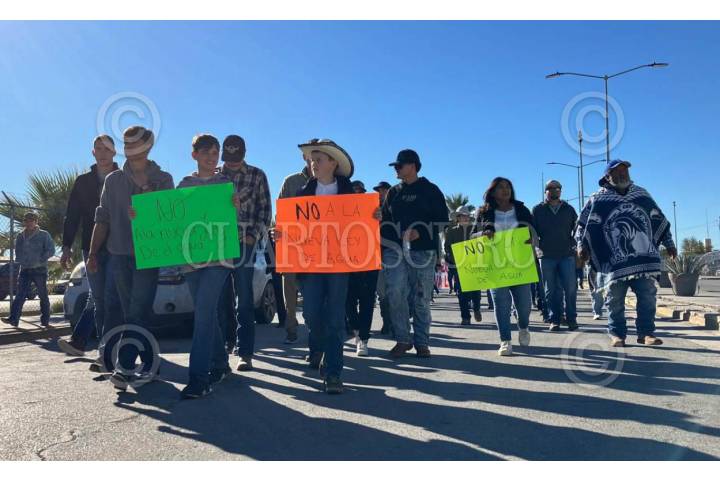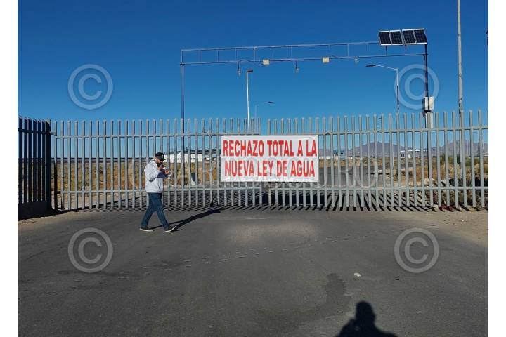 CIUDAD JUÁREZ, CHIHUAHUA, 24NOVIEMBRE2025.- Agricultores se manifestaron en el Puente Internacional Zaragoza para oponerse a modificaciones a la Ley General de Aduanas, ya temen que sus concesiones les sean retiradas por el gobierno. Los inconformes se movilizaron también con transportistas. Durante su manifestación irrumpieron en las oficinas administrativas de la aduana, para pedirle a la Presidenta de México que no caiga en la tentación de “secuestrar el agua”. FOTO: MANUEL SÁNCHEZ/CUARTOSCURO.COM