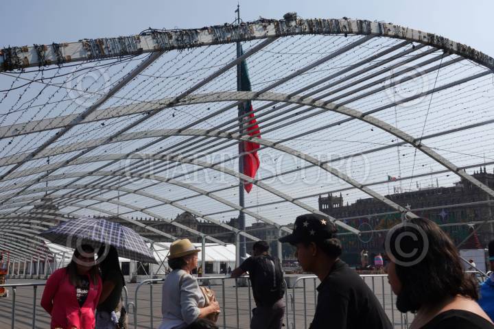 CIUDAD DE MÉXICO, 21OCTUBRE2025.- Comenzó la instalación de la Ofrenda Monumental en la Plancha del Zócalo como parte de los preparativos del día de muertos. FOTO: MARIO JASSO/CUARTOSCURO.COM