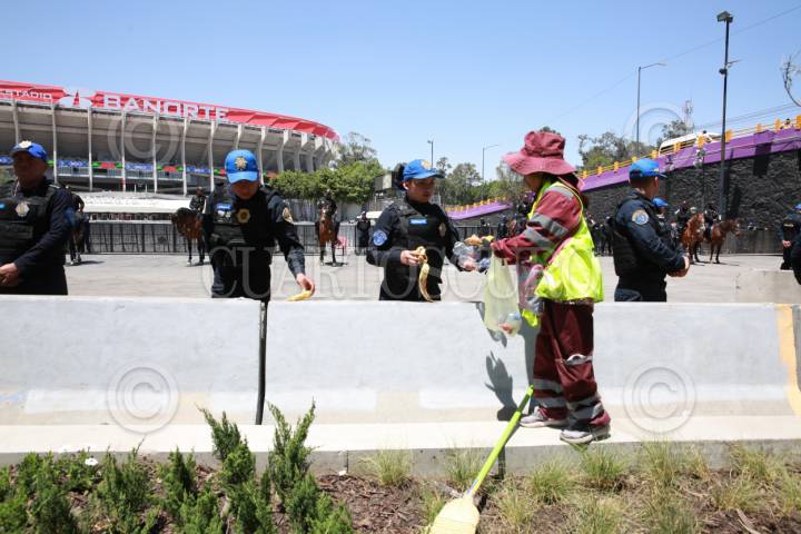 CIUDAD DE MÉXICO, 28MARZO2026.- Decenas de elementos de la Policía Montada de la Ciudad de México resguardan el acceso principal del Estadio Banorte, donde se jugará en la noche un partido amistoso entre las selecciones de futbol de México vs Portugal. FOTO: GERMÁN ROMERO/CUARTOSCURO.COM