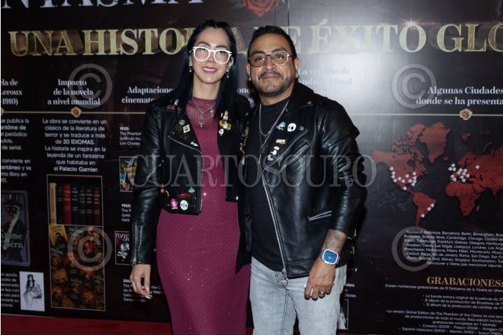 CIUDAD DE MÉXICO, 15ABRIL2026.- Luis Fernando Peña y Aly Noris a su paso por la alfombra roja del musical El Fantasma de la Opera, presentando al nuevo protagonista Luis Caballero Dussauge “EL Potro”, en el Teatro de Los Insurgentes. FOTO: EDGAR NEGRETE LIRA/CUARTOSCURO.COM