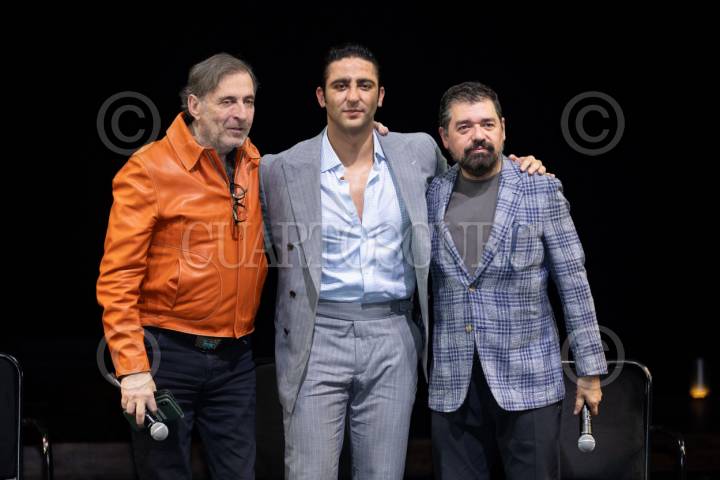 CIUDAD DE MÉXICO, 15ABRIL2026.- Los productores Morris Gilbert y Claudio Carrera acompañaron a Luis Caballero Dussauge “Potro” es su nocghe de estreno en el musical El Fantasma de la Opera, en el Teatro de Los Insurgentes. FOTO: EDGAR NEGRETE LIRA/CUARTOSCURO.COM