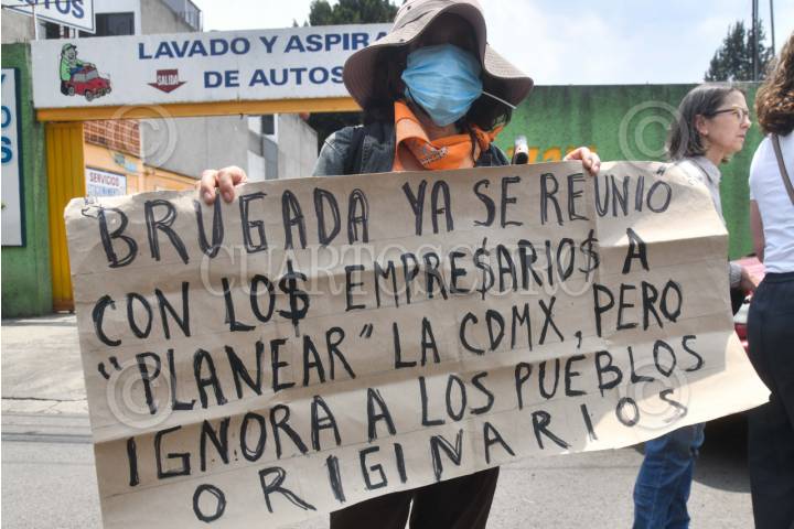 CIUDAD DE MÉXICO, 10ABRIL2026.- Habitantes de pueblos originarios de la capital se manifestaron al exterior de la Secretaría de Planeación, Ordenamiento Territorial y Coordinación Metropolitana (Metrópolis) para denunciar que sus comunidades no fueron contempladas para participar en las consultas ciudadanas del Plan General de desarrollo de la Ciudad de México 2015-2045, el cual se dio por finalizado este día. FOTO: MARIO JASSO/CUARTOSCURO.COM