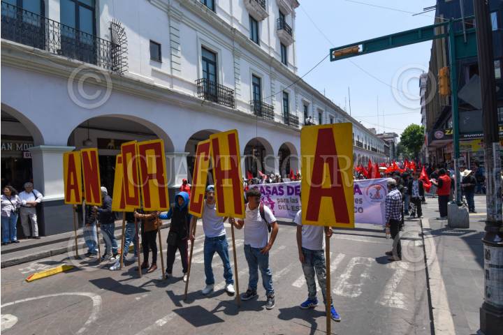 TOLUCA, ESTADO DE MÉXICO, 16ABRIL2026.- Antorchista marcharon en la ciudad de Toluca solicitando una reunión con la gobernadora mexiquense Delfina Gómez Álvarez, para que tomen en cuenta su pliego petitorio en el cual piden servicios básicos como agua potable, drenaje, acondicionamiento de escuelas, mobiliario, salario justo a maestros, entre otras cosas. FOTO: CRISANTA ESPINOSA AGUILAR/CUARTOSCURO.COM