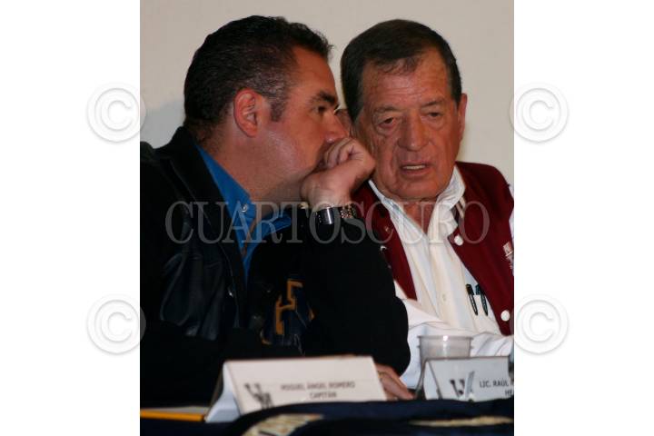 MÉXICO, D.F., 26NOVIEMBRE2008.- El coach de los Pumas Raul Rivera Sanchez y el coach de las Águilas Blancas, Jacinto Licea Mendoza durante la conferencia de prensa donde se dio a conocer que el partido de la final entre Pumas y IPN Se realiza el próximo sábado en el Estadio Olímpico de Ciudad Universitaria. FOTO: RICARDO CASTELAN/CUARTOSCURO.COM