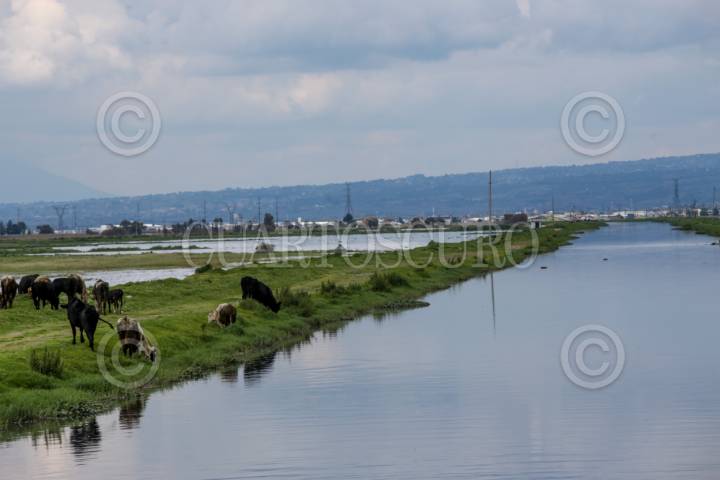 TOLUCA, ESTADO DE MÉXICO, 23SEPTIEMBRE2025.- Vacas comen pasto en las orillas del Río Lerma, el cual su nivel ha aumentado debido a las lluvias que se han registrado en las últimas semanas en el Valle de Toluca. FOTO: CRISANTA ESPINOSA AGUILAR/CUARTOSCURO.COM