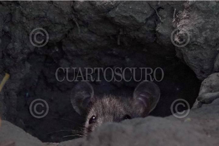 CIUDAD DE MÉXICO, 06FEBRERO2026.- Un ratón se asoma desde su madriguera en uno de los camellones de avenida Paseo de la Reforma ubicados entre la glorieta de La Diana y la Estela de Luz. Recientemente vecinos y trabajadores han denunciado un aumento en la presencia de dichos ruedores en la zona. FOTO: MARIO JASSO/CUARTOSCURO.CO